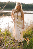 Meet the dress that does it all—part prairie charm, part desert dream. This long, flowy button-down is made from a breathable blend of organic cotton and bamboo, giving it a buttery soft feel that moves easy with the wind and your stride.